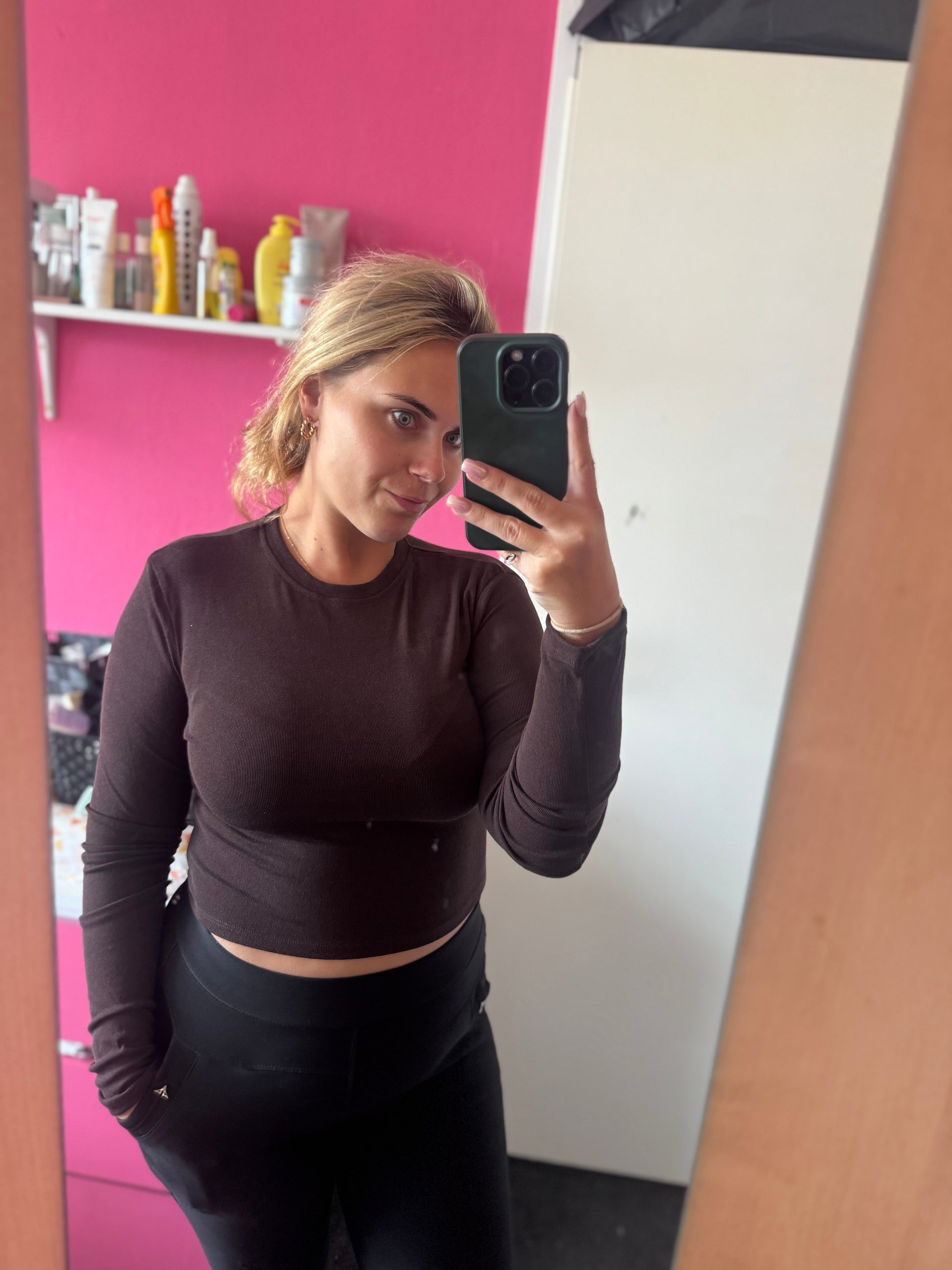Dit leuke topje is een topper voor in je kast. Hebben hem in de kleuren rood en bruin. Hij bevat strecht waardoor die heel lekker aansluit op je lichaam. Zou hem bestellen op eigen maat.