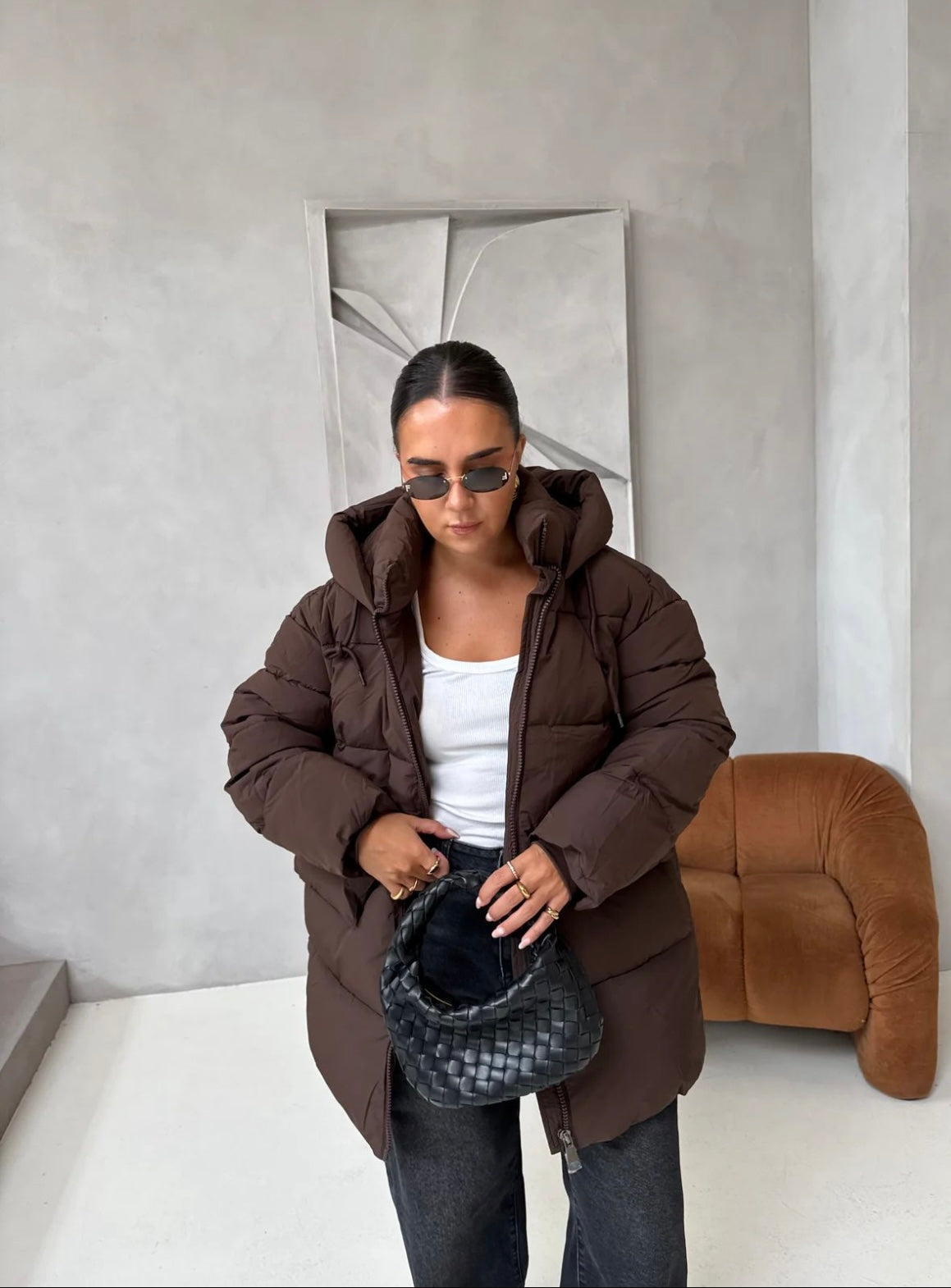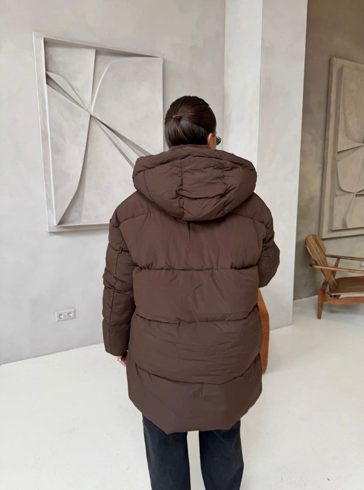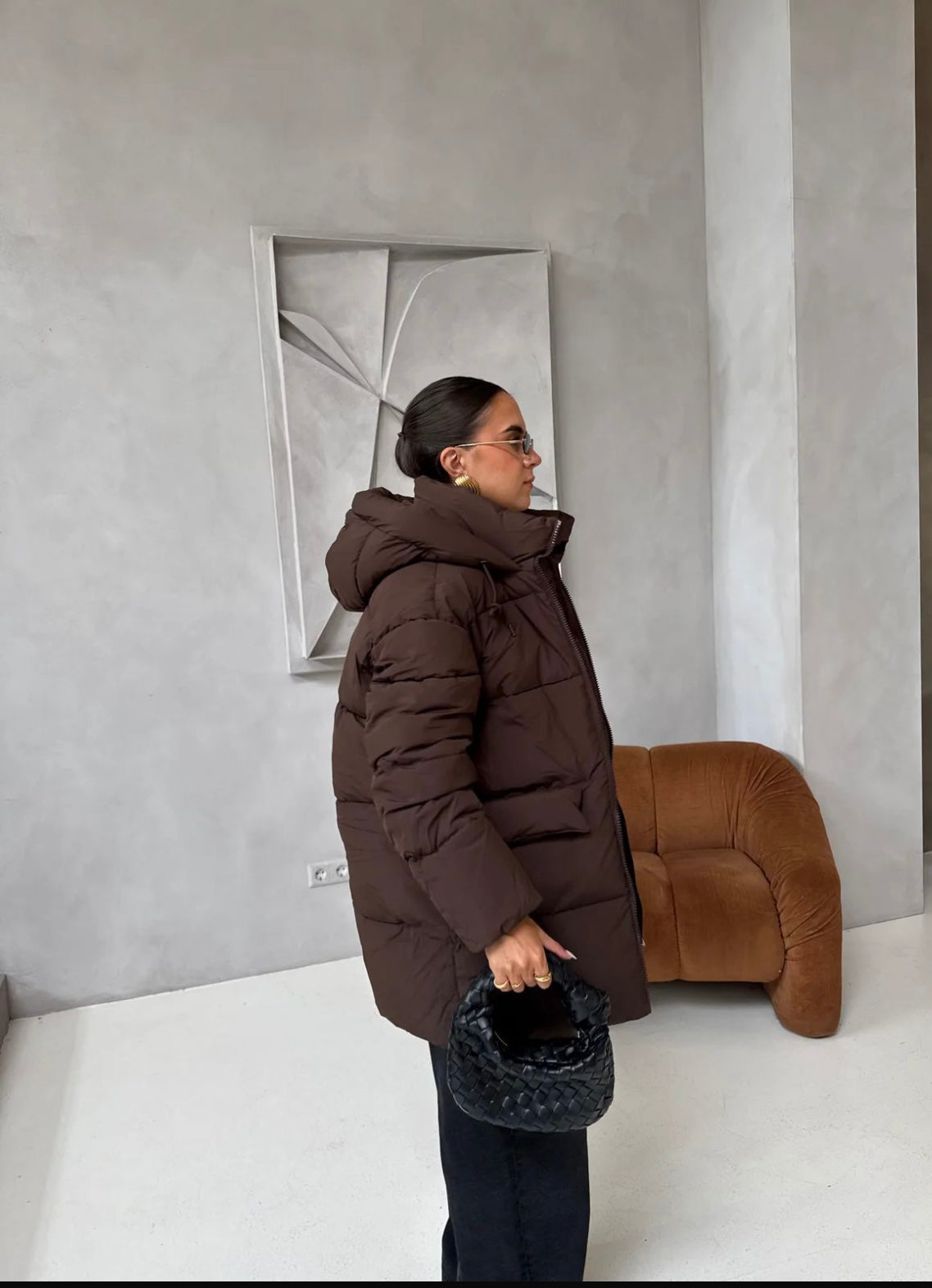 Deze jas is in de kleur bruin, het is een gevoerde winterjas. Het heeft een capuchon en is lekker warm. Dit is toch de perfecte jas die je moet hebben!